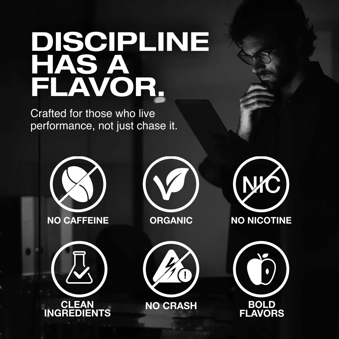 Clean, sustained focus within 5 minutes. Enhanced mental clarity without jitters or anxiety. Improved cognitive performance that lasts 2-4 hours with zero crash. You'll feel sharp, calm, and energized, like the best version of yourself, naturally.